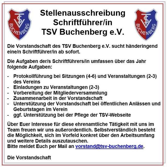 TSV Vorstandschaft sucht immer noch eine/n Schriftführer/in